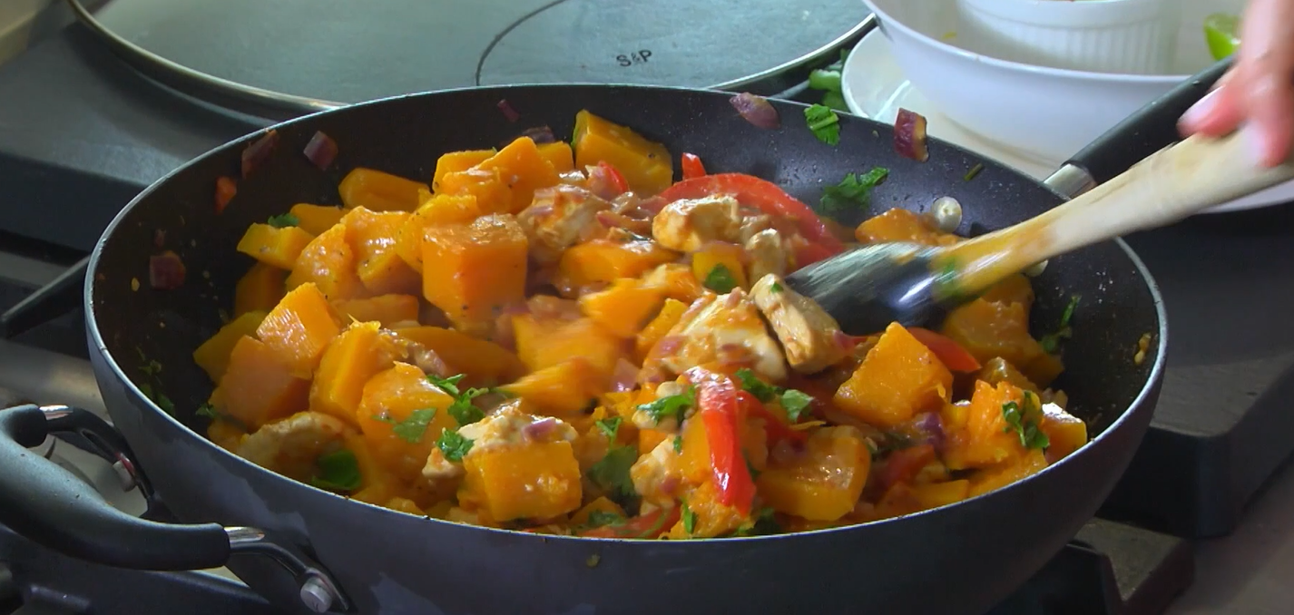 One of the most appealing aspects of this recipe is its flexibility. The curry can be made with tender chicken fillets for a protein-rich meal, or with chickpeas for a plant-based alternative. Both options work beautifully with the sweet butternut and fragrant spices, making the recipe adaptable for different dietary preferences without sacrificing flavour.