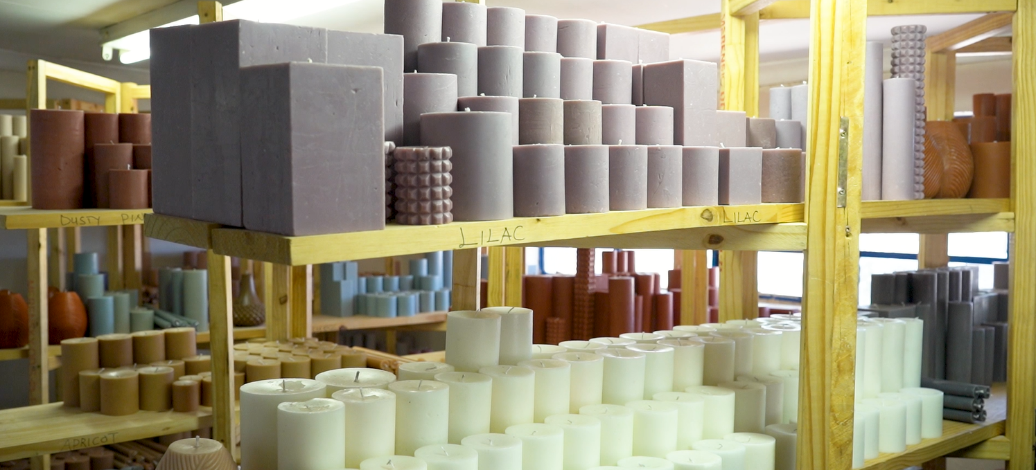 Beyond form, colour plays a defining role in their collection. Rather than relying on pre-set palettes, the creators developed their own colour system using mathematical precision, allowing for a cohesive yet distinctive range. Every element from wax to wick to dye is locally sourced, reinforcing a commitment to authenticity and locality. This careful curation of materials ensures that each candle is not only visually striking but also rooted in a proudly South African identity.