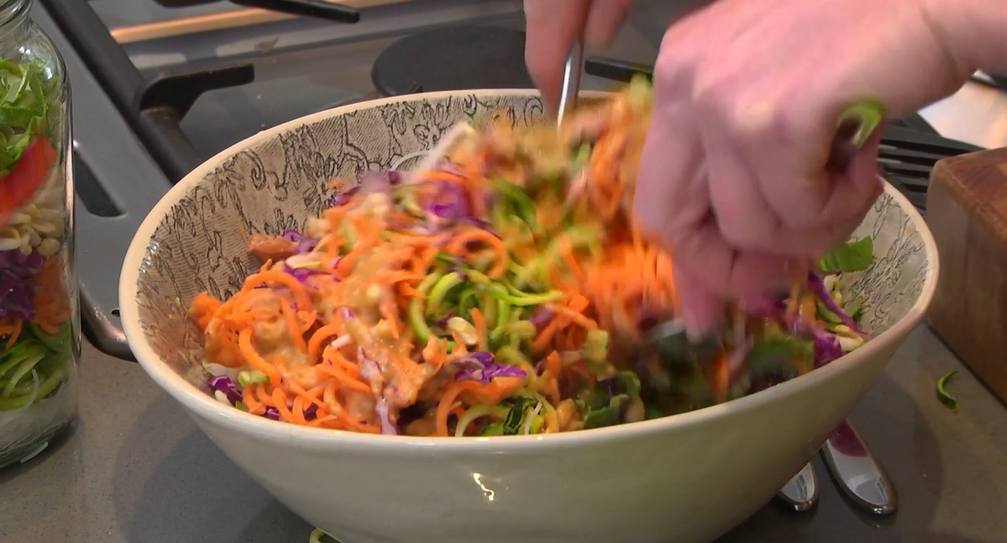 Christine Phillips shares a family favourite: a crunchy peanut butter salad packed with vibrant vegetables and optional protein. Designed to be as nutritious as it is visually appealing, this salad is rich in antioxidants and fibre, making it a healthy choice for both adults and children.